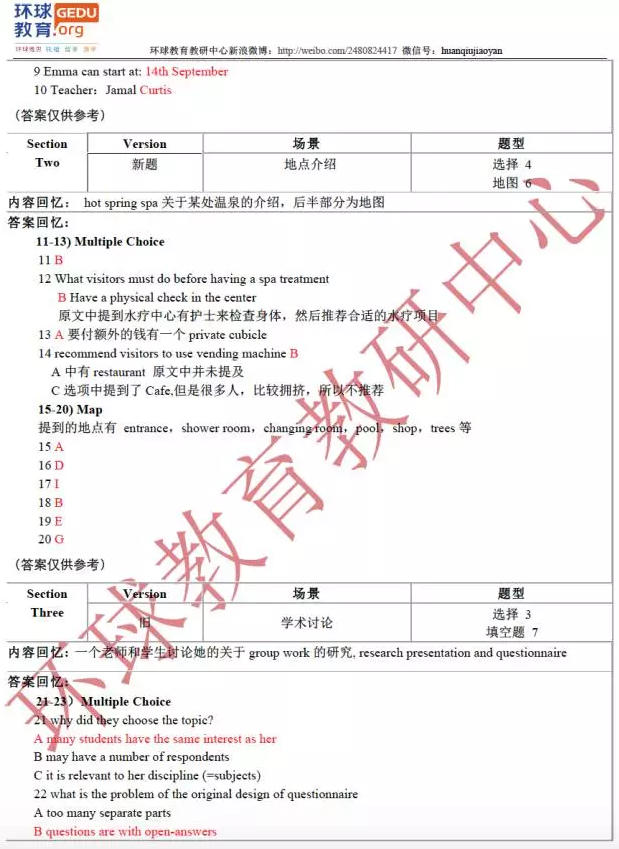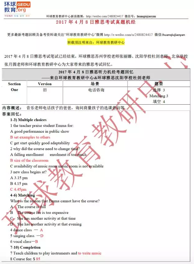 环球教育(原环球教育)教研中心的名师们此次为大家送上2017年4月8日雅思听力考试回忆及答案,希望对大家备考雅思有所帮助!
